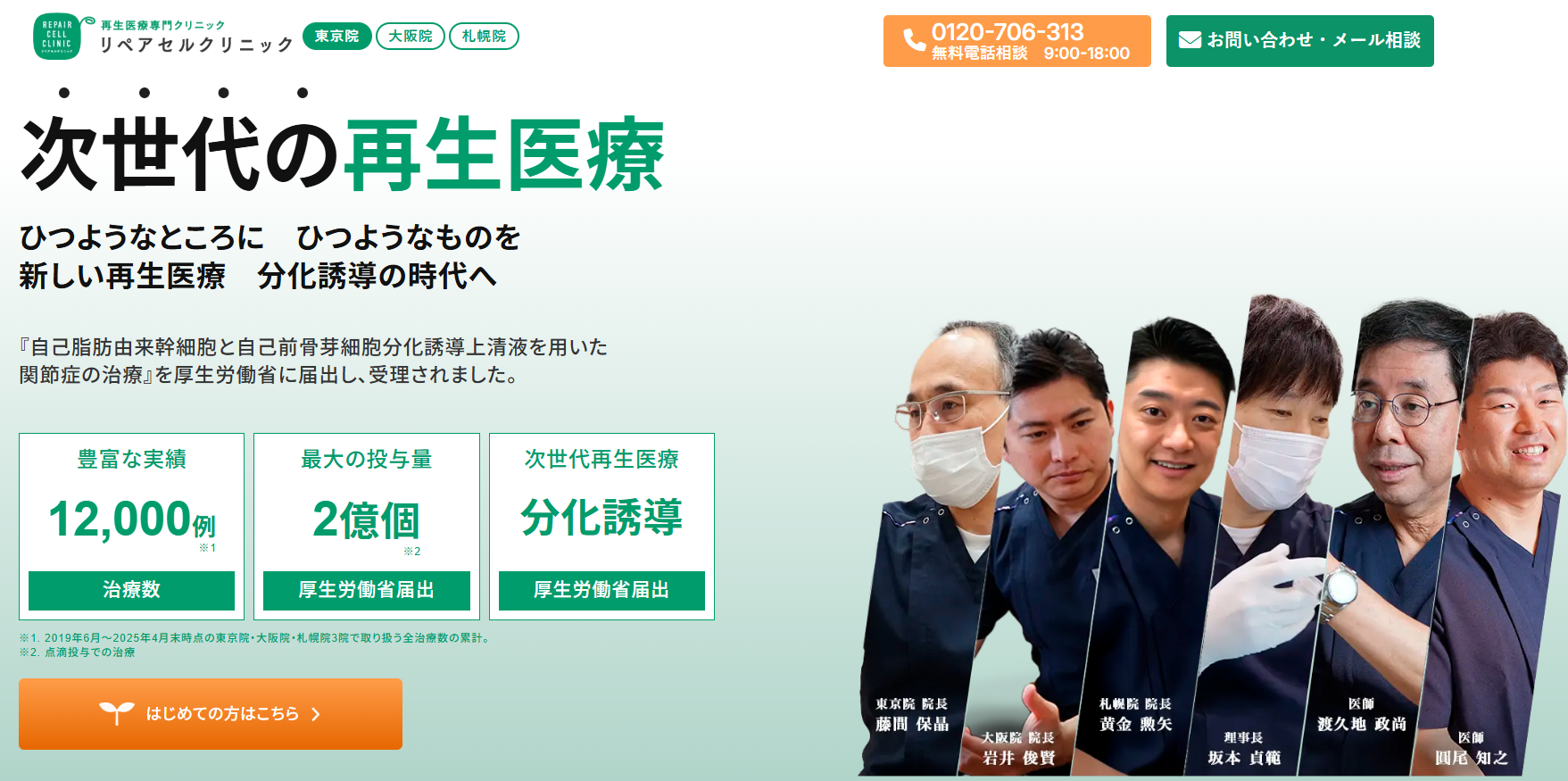 リペアセルクリニックは13,000例の治療実績(2025年9月末時点)と優れた治療効果で知られ、再生医療に精通した専門医が在籍しています。これまでの実績が認められ、様々な著書の執筆やテレビなどのメディアからも多くの取材を受けています。