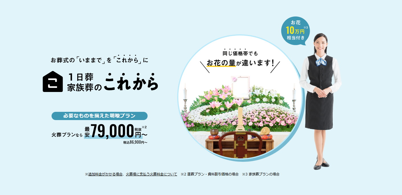費用を抑えつつも、内容も大切にしたい方にオススメな家族葬サービスなのが「1日葬・家族葬のこれから」です。