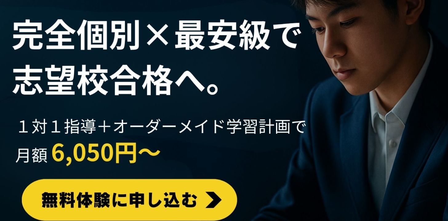 勉強計画と学習管理が安い料金で!オンライン個別指導塾「ウィズスタディ」は、月々9,800円〜という安さで中学生・高校生の受験指導を行っています。また、【2025年最新版】オンライン大学受験コーチング塾おすすめ人気ランキング9選という記事もオススメです。