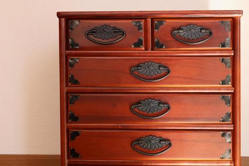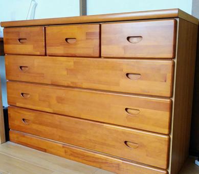 洋タンス洋タンスは、主に洋服や小物の整理を目的として家庭で広く使われている収納家具です。引き出しタイプが中心で、チェストとも呼ばれます。材質は木製や合成素材などさまざまで、部屋のインテリアに合わせて選ぶことができます。使い勝手の良さが特長で、衣類をたたんで整理したり、小物を分類して収納したりするのに適しています。昭和後期から現在にかけて多くの家庭で採用され、リビングや寝室、子ども部屋など幅広い場所で活用されてきました。一方で、大型の洋タンスは重量があり移動や掃除の際に手間がかかることがあります。最近では、軽量で組み立て式の洋タンスも登場し、利便性とデザイン性の両立が進んでいます。