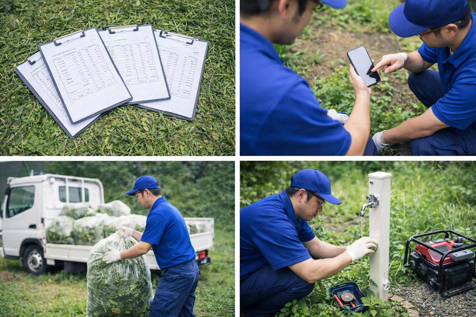 便利屋へ依頼するときは、草の処分だけ別料金なのか、作業とセットなのかを必ず確認してください。見積書に回収・袋詰め・搬出・処分の記載があると分かりやすくなります。