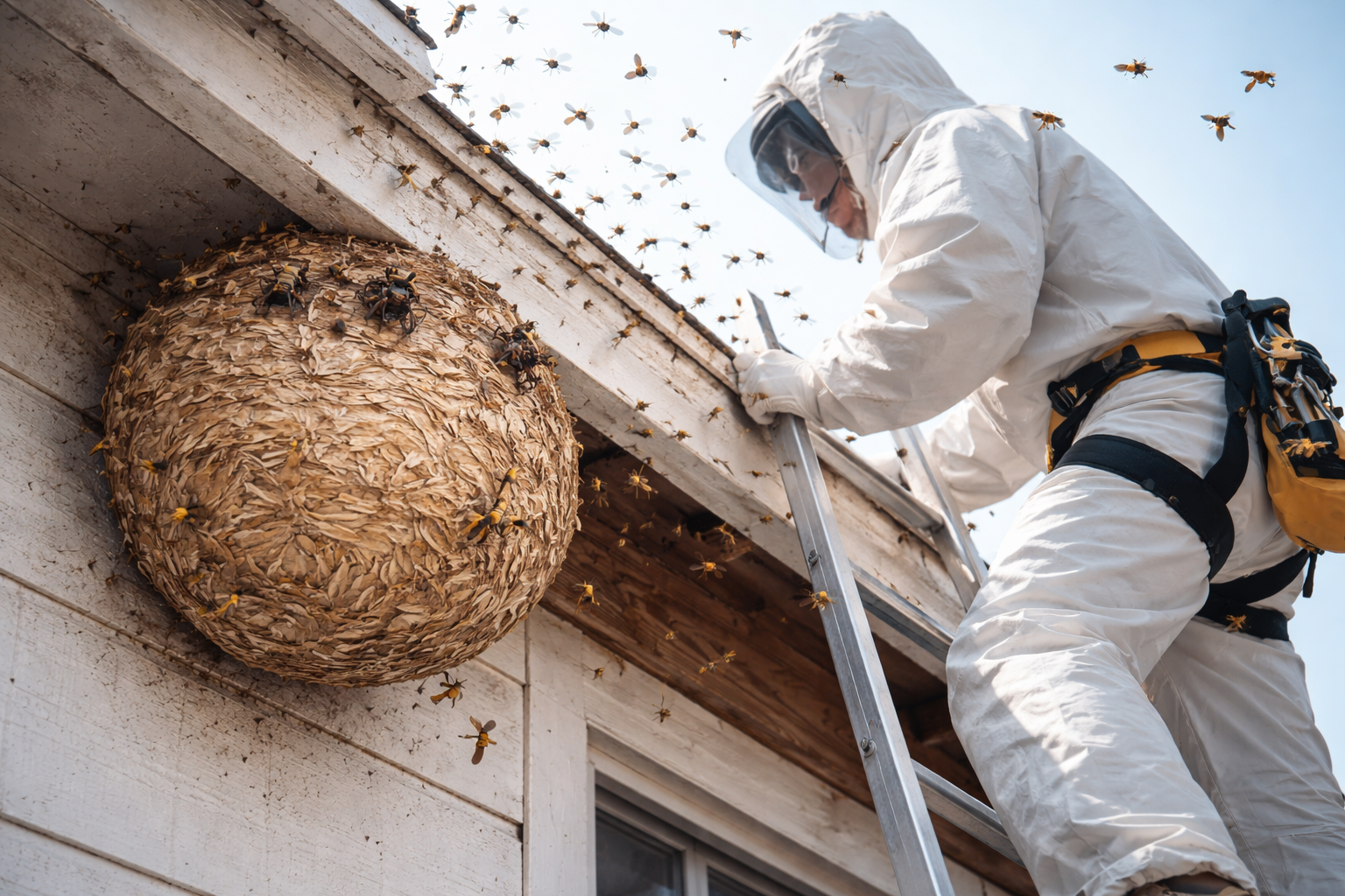 蜂駆除専門業者は、蜂の種類や巣の状態を正確に判断し、状況に合った方法で安全に駆除を行います。特にスズメバチの場合、攻撃性が高く、刺されると命に関わるケースも。そのため専門知識と装備が不可欠となります。