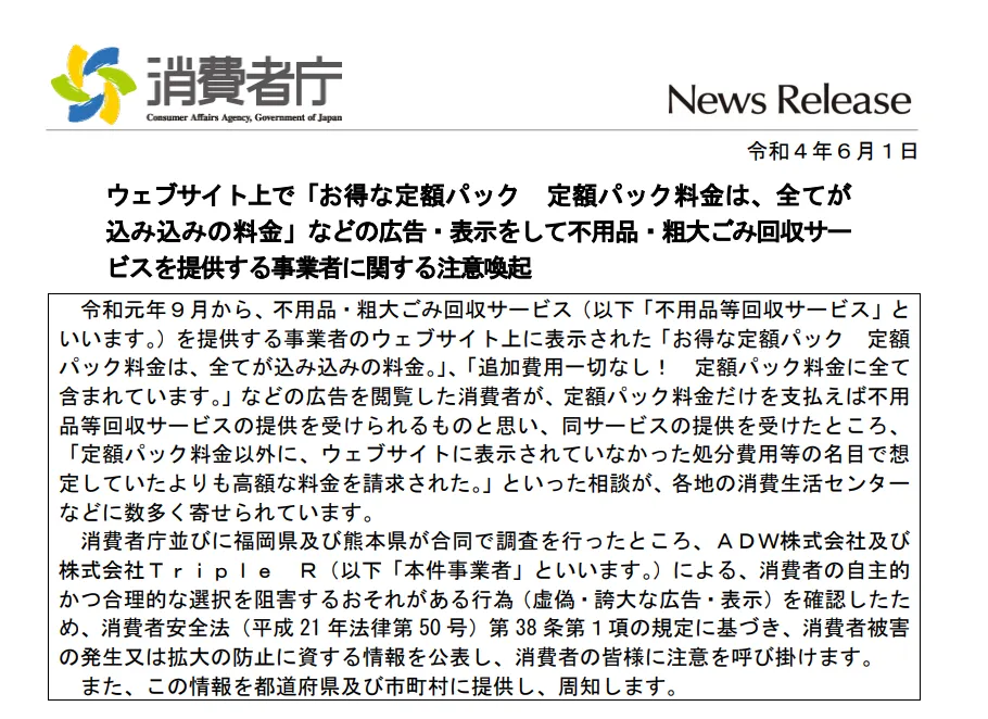とくに不用品関連では、産業廃棄物処理業や古物商の表示があっても、家庭ごみの回収は別の許可が必要です。
